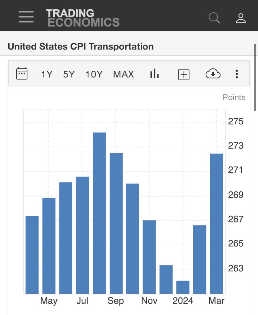 CPI 交通運輸類指數 , 資料來源:tradingeconomics.com