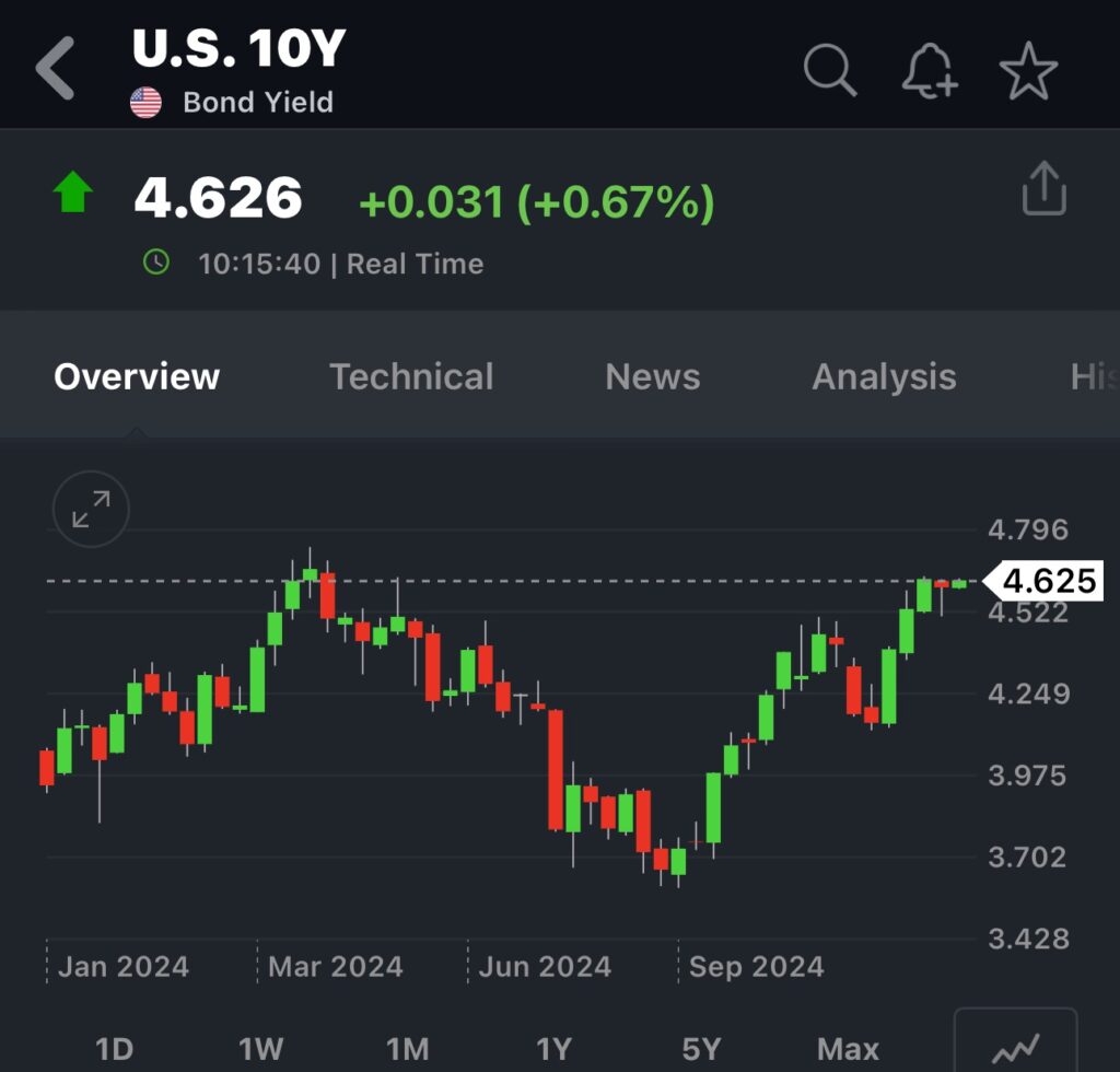 但是殖利率如果又高於4.8%,那麼下一步有可能會直接在往上攻到五%;考量到美國房貸利率目前已經又貼近七%的水準市場可能會有比較大的修正,所以這兩者要相互觀察。