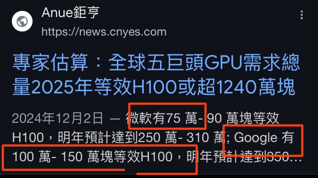 再配合這個新聞來看,全球5巨頭大概擁有300萬片以上的H100 GPU,中國所擁有的H800 GPU是降規格版後的H100,也就是說H 800在NVlink跟雙精度上大概都只有H 100的1/N。