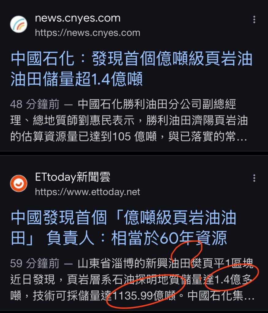 根據中國媒體報導,中國石油化工集團在山東的濟陽發現頁岩油田,探明儲量高達1.4億噸,技術可採量有一說是有1135.99萬噸。
