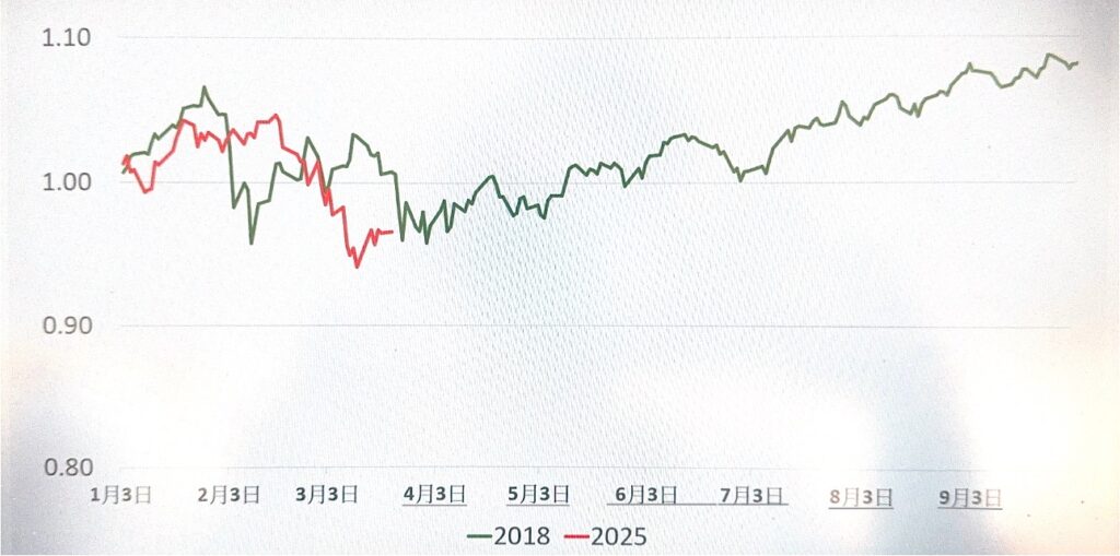 因為勞者我非常有印象2018年的時候一月市場是大漲的,然後二月才因為新興市場先修正,美國才出現大跌;然後在四月確定貿易關稅站出爐,反而是利空出盡打了一個底。