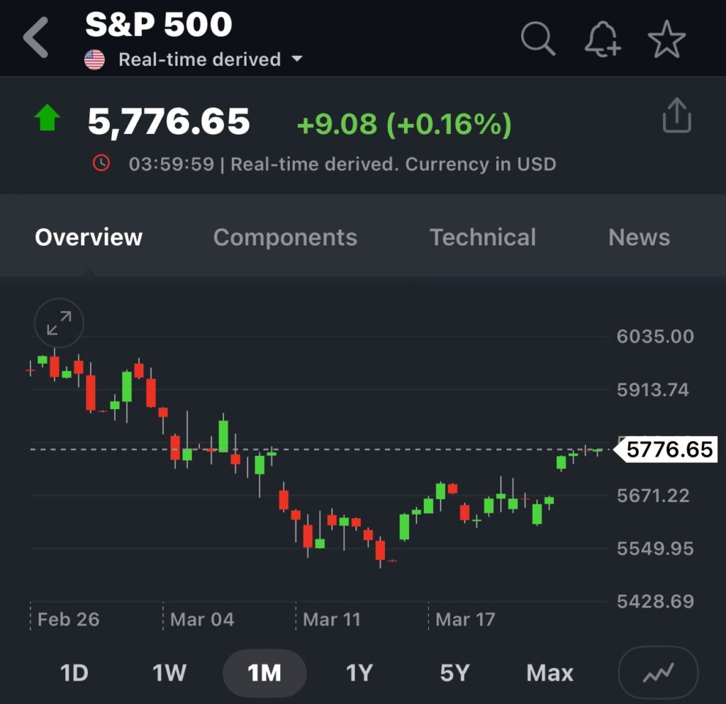 雖然S&P500還沒有漲回一個月前的高點(本來也就不可能同一時間漲回高點),但有機會在現在的價位撐著,直到本週末的物價數據出爐。