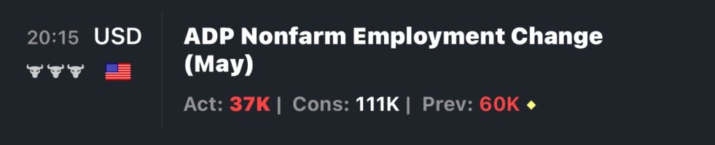都往下,不過跟聯準會沒什麼太大關聯,反而是今天公布的小非農,意外的只上漲了37,000人,和原本市場的共識預期應該是新增111,000人。