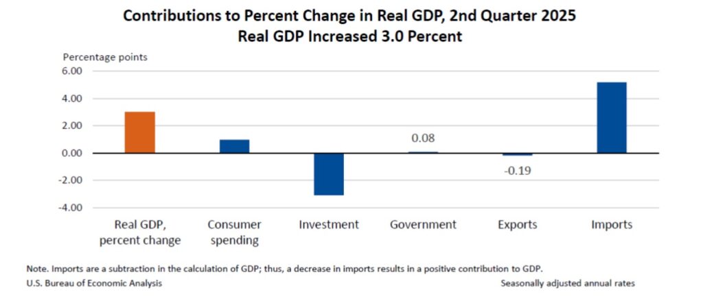 直接白話解釋,美國第二季GDP年化成長3%,比第一季的數字好很多。