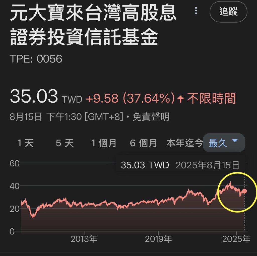 如果以0050淨值出來看,近三年扣掉配息之後是創新高的;那0056呢?