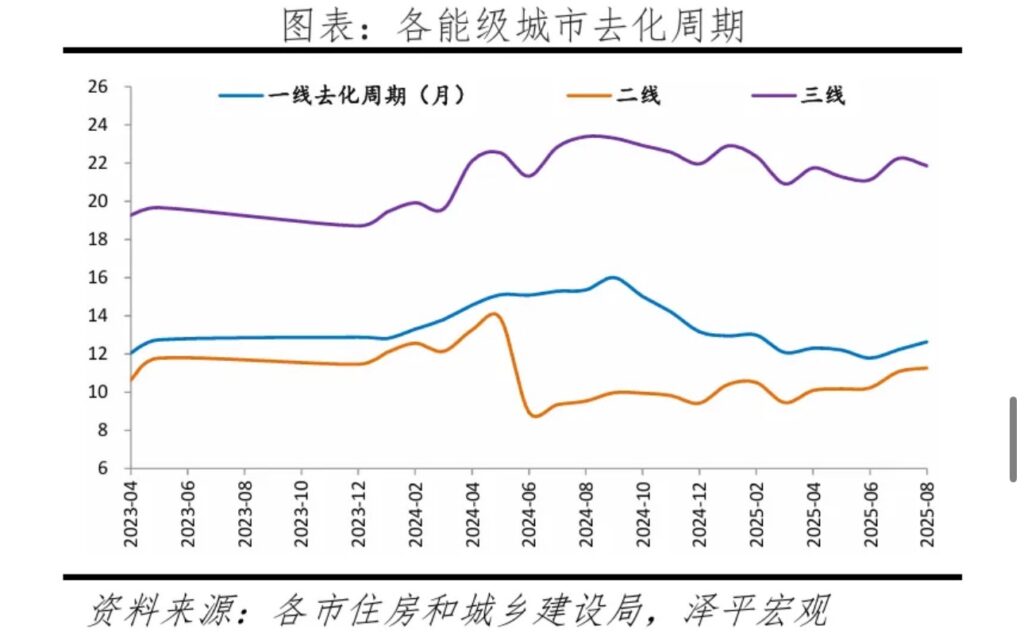 如果我們從目前的庫存來看,三線城市平均要消化將近22個月,二級跟一級城市,雖然普遍在13跟12個月左右,但是這個數字其實是慢慢地上升,也就是表示目前沒有看到消費者,對於房地產的投入。