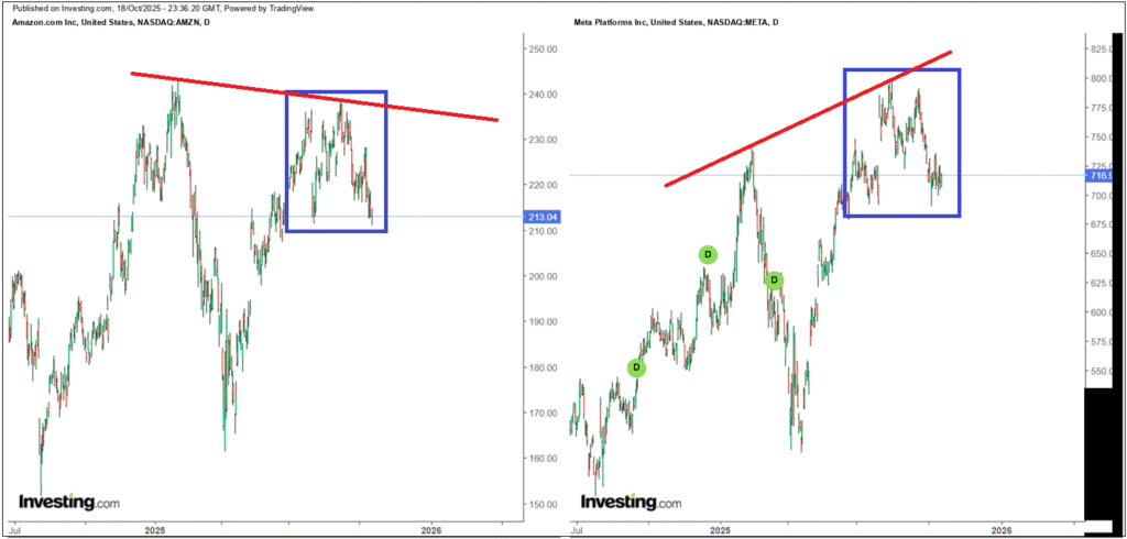 Amazon至今年初創高後,七月九月雖然一度想要挑戰,但仍無法越過高點。財報問題就暫時不談,在AI支出上也沒有落人後,短線不排除還有壓力,算是資金轉移的可能性。